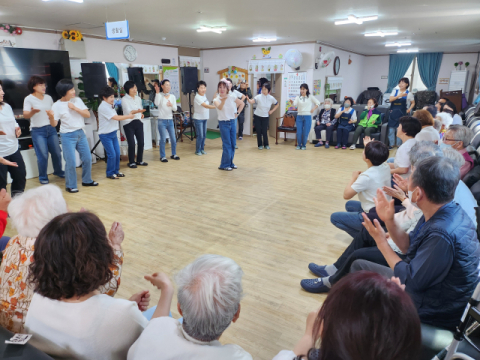 보두미 봉사활동에는 총 29명의 성인학습자가 참여했으며 인사말을 시작으로 율동, 민요, 건강체조 등 어르신들의 신체 기능 유지와 정서적 만족을 고려한 6개 프로그램이 운영됐다. 또한 인지지원 프로그램으로 ‘안마봉 만들기’, 신체활동으로는 ‘안마 체조 시연’도 함께 진행됐다.