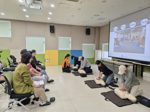 교육 참가자들은 기도폐쇄 상황에서 시행하는 응급처치법, 하임리히법과 자동심장충격기 사용 방법 등을 실습하며 올바른 심폐소생술 및 응급처치 능력 강화, 다양한 안전사고 및 응급상황 발생 시 적절한 처치 방법과 주의사항을 숙지했다.