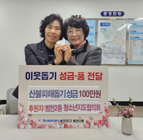 부산진구 범천2동 청소년지도협의회(회장 정주야)는 2일 최근 발생한 산불로 피해를 입은 이재민들을 돕기 위해 성금 100만 원을 부산진구 범천2동(동장 한정민)에 기탁했다.