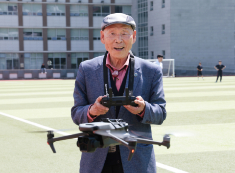 드론을 날리는 모습을 보여 달라는 요청에 다음번에 경성대 축구장에서 만나자고 했다. 재회하던 날 드론 조종기를 잡은 그의 모습은 천진난만해 보였다. 드론을 처음 날릴 때 기분이 어땠는지 묻자 “참 신기했다”는 대답이 돌아왔다. 83세에 드론 조종 자격증을 따서, 90세에 드론을 날리고 있는 분이 더 신기해 보였다. ‘노인과 드론’은 통쾌했다.