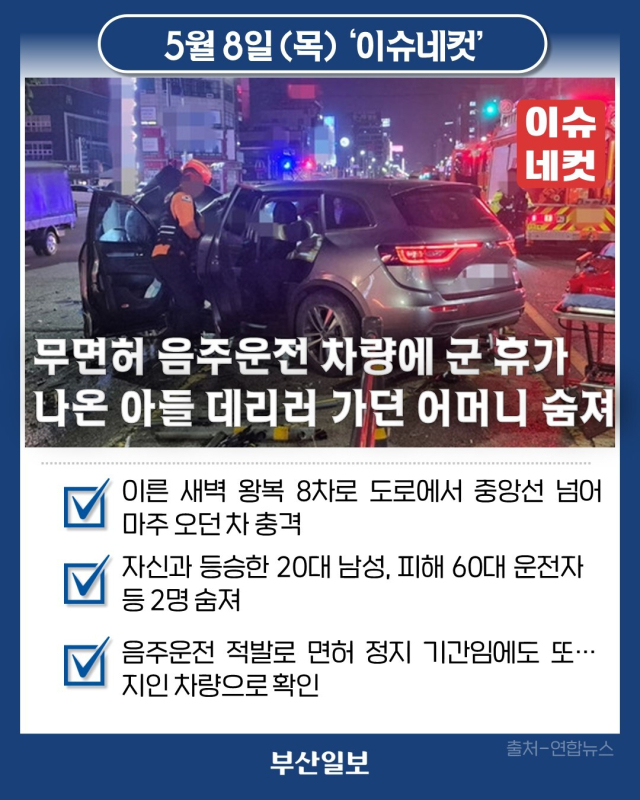 무면허 음주운전 차량에 군 휴가 나온 아들 데리러 가던 어머니 숨져 [이슈네컷]