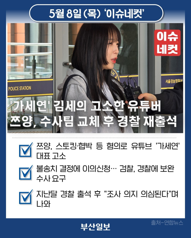 '가세연' 김세의 고소한 유튜버 쯔양, 수사팀 교체 후 경찰 재출석