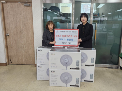 동구 범일1동 관계자는 “선풍기 한 대는 단순한 가전제품을 넘어 어려운 이웃들에게는 건강을 지키는 필수품이자 마음을 시원하게 해주는 위로가 된다”면서 “지속적인 나눔을 실천해 주신 최순희님께 깊이 감사드린다”고 말했다.