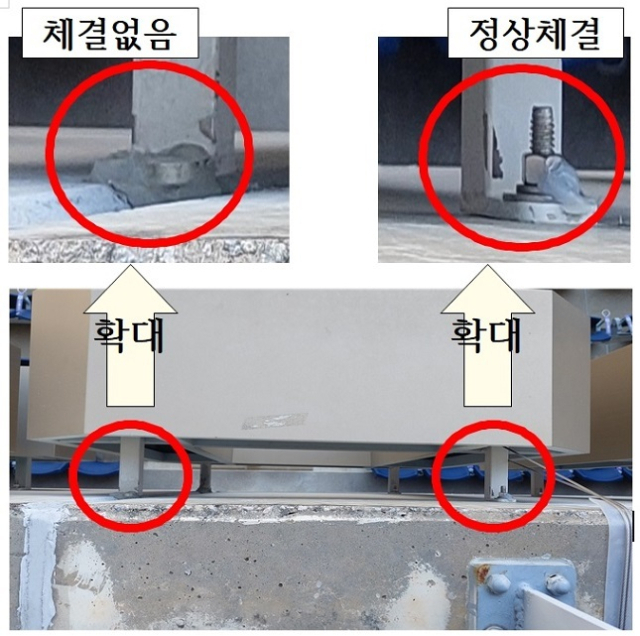 지난 5월 2일 국토부 기술안전정책관과 전문가들이 보완조치 이행여부를 확인하기 위해 NC파크를 방문했을 당시 발견된 사항. 국토부 제공