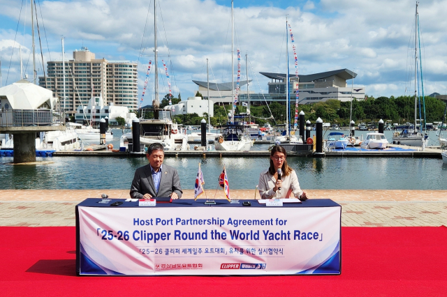 통영시는 지난해 9월 24일 통영해양스포츠센터에서 영국 클리퍼벤처스, 경남도, 경남요트협회와 ‘25-26 클리퍼 세계일주요트대회’ 유치를 위한 실시협약을 체결했다. 부산일보DB