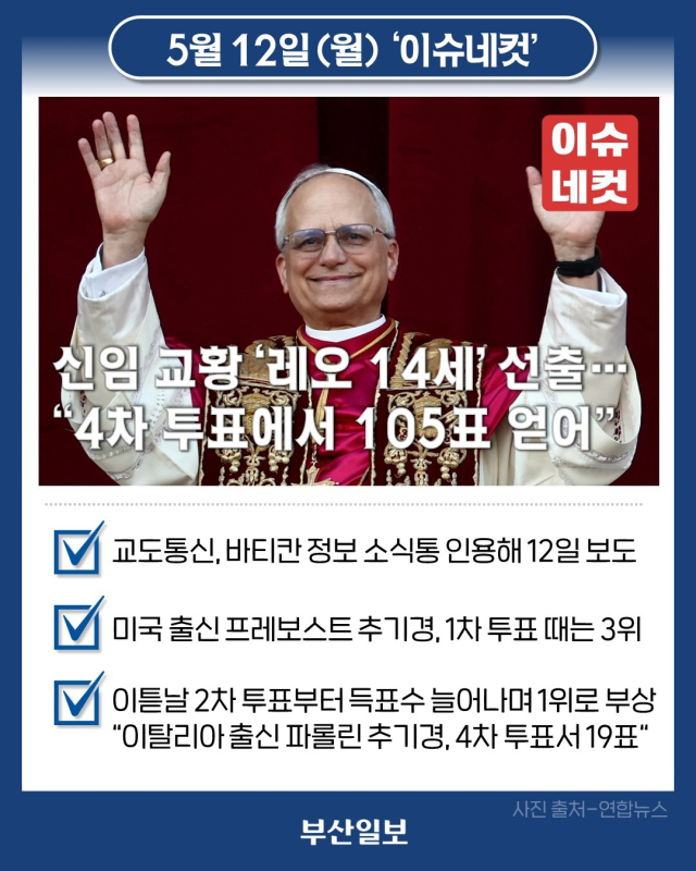 4. 신임 교황 ‘레오 14세’ 선출…“4차 투표에서 105표 얻어”