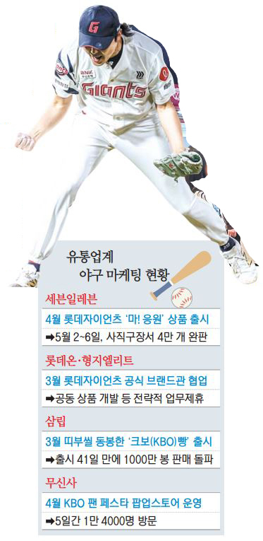 지난 2~6일 황금연휴 기간 프로야구 롯데자이언츠의 홈경기가 열린 부산 사직구장 내 편의점 세븐일레븐 점포는 인산인해를 이뤘다. 세븐일레븐이 롯데자이언츠와 협력해 선보인 ‘마! 응원’ 상품을 사기 위한 야구 팬이 몰려서다. 이 기간 준비한 4만 개 상품이 모두 팔렸고 세븐일레븐은 즐거운 비명을 질렀다.