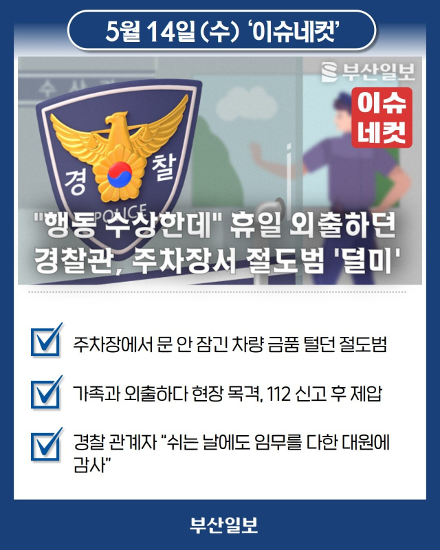 "행동 수상한데" 휴일 외출하던 경찰관, 주차장서 절도범 '덜미'
