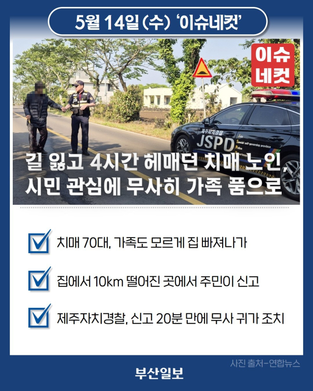 길 잃고 4시간 헤매던 70대 치매 노인, 시민 관심·신고에 무사히 가족 품으로