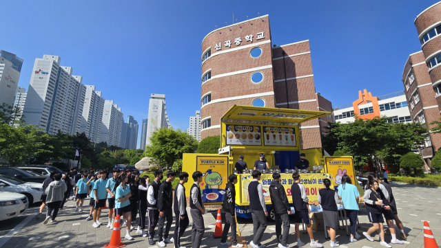 남녀공학인 신곡중 650여 명 학생과 교사는 와플 트럭에서 갓 만들어진 와플과 음료수를 먹으며 사제 간 신뢰와 감사를 공유하는 시간을 가졌다.
