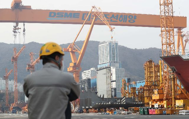 경남 거제시 대우조선해양 본사에서 숙련공이 일하는 모습. 부산일보DB