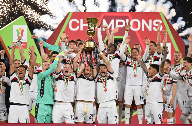 이탈리아 프로축구 세리에A의 볼로냐가 15일(한국 시간) 이탈리아 로마의 스타디오 올림피코에서 열린 AC밀란과의 2024-2025 코파 이탈리아 결승전에서 1-0으로 승리하며 51년 만에 코파 이탈리아(이탈리아컵) 우승 트로피를 들어 올렸다. 신화연합뉴스