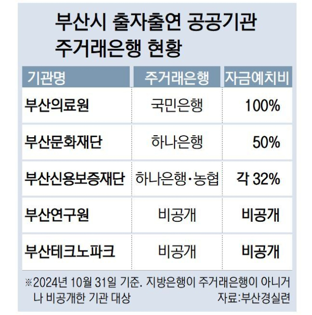 부산시는 지난 8일부터 시 산하 공공기관 중 지방은행 예치 비율이 낮은 기관을 중심으로 현황 파악에 나섰다. 일부 산하 기관 예치율이 낮은 이유를 찾아 내용을 뜯어보겠다는 취지다.