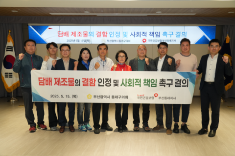 동래구의회는 “담배로 인한 국민 건강 악화와 그로 인한 사회·경제적 손실이 심각한 수준임에도 불구하고, 담배 제조사들은 제조물의 결함을 인정하지 않고 있으며, 이에 대한 사회적 책임도 다하지 않고 있다”며 건보공단의 담배소송을 지지했다.