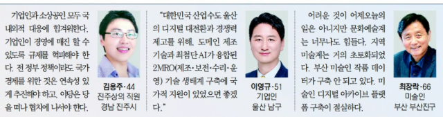 기업인과 소상공인 모두 국내외적 대응에 힘겨워한다. 기업인이 경영에 매진 할 수 있도록 규제를 혁파해야 한다. 전 정부 정책이라도 국가 경제를 위한 것은 연속성 있게 추진해야 하고, 야당은 당을 떠나 협치에 나서야 한다.