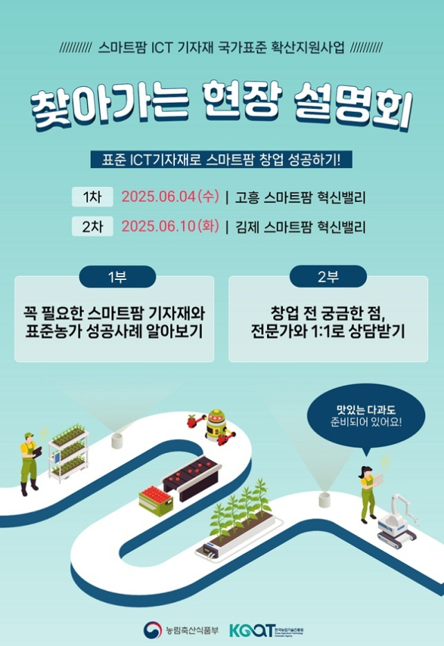 설명회는 오는 6월 4일 고흥 스마트팜혁신밸리, 6월 10일 김제 스마트팜혁신밸리에서 각각 열린다. 설명회는 예비 창업자와 지역 농업인을 주요 대상으로 한다.