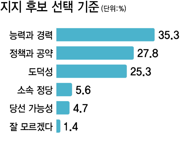 지지 후보 선택 기준 ‘능력과 경력’, 35.3%
