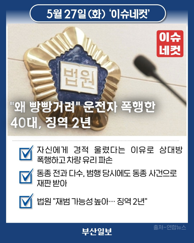 "왜 빵빵거려" 운전자 폭행한 40대, 징역 2년