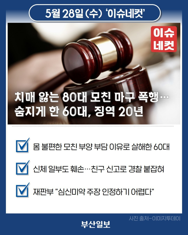치매 앓는 80대 모친 마구 폭행…숨지게 한 60대, 징역 20년