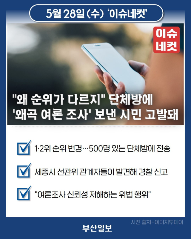 "왜 순위가 다르지" 단체방에 '왜곡 여론 조사' 보낸 시민 고발돼