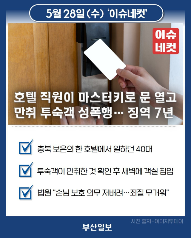 호텔 직원이 마스터키로 문 열고 만취 투숙객 성폭행… 징역 7년 [이슈네컷]