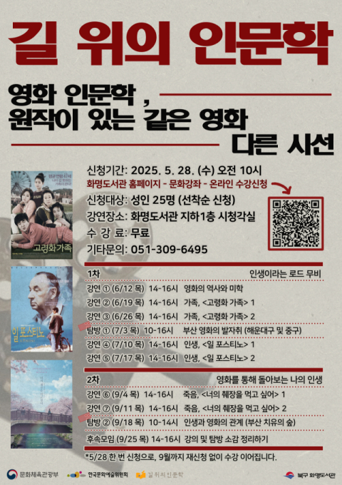 ‘길 위의 인문학’ 프로그램 수강생 접수는 28일 오전 10시부터 화명도서관 홈페이지에서 선착순으로 진행된다.