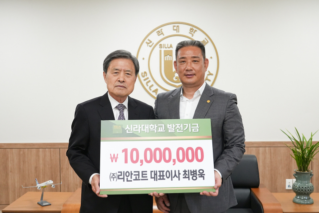 신라대학교(총장 허남식)는 (주)리안코트 최병욱 대표이사가 대학발전기금 1000만 원을 기탁했다고 28일 밝혔다.