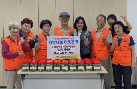 부산 연제구 거제4동 유림토피아 자원봉사캠프(캠프장 안화행)는 지난 21일 연제구 거제4동(동장 안미애)에 봄을 맞이해 취약계층 식생활 건강을 위한 '사랑나눔 이웃돕기' 열무 물김치 30통을 기탁했다.