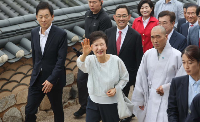 이에 박 전 대통령은 쑥스러워하는 모습을 보이면서도 이들 앞에서 “이전에도 범어사에 왔었는데 올 때마다 부산 시민 여러분들이 따뜻하게 맞아주셔서 정말 감사드린다”며 “건강하세요. 또 뵙겠다”고 환한 웃음을 지어보였다.