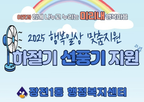 이지영 장전1동장은 “이번 선풍기 지원으로 무더위에 취약한 분들이 조금이라도 시원한 여름을 보내셨으면 좋겠다. 또한 본격적인 무더위에 대비해 건강하고 안전한 일상을 위한 맞춤형 서비스를 꼼꼼히 지원할 수 있게 하겠다”고 말했다.