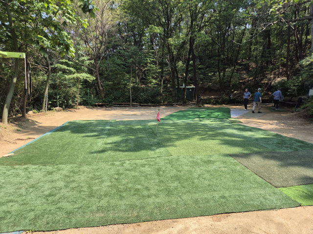 2일 부산 부산진구청에 따르면 부산진구 엄광산 중턱에서 노인들이 바닥에 인조 잔디를 깔고 골프를 치고 있다는 민원이 지난해 3월부터 지난달까지 수차례 접수됐다.