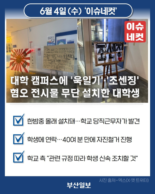대학 캠퍼스에 '욱일기'·'조센징' 혐오 전시물 무단 설치한 대학생…"신속 조치 예정" [이슈네컷]