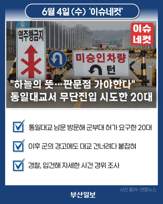 "하늘의 뜻…판문점 가야한다" 통일대교서 무단진입 시도한 20대