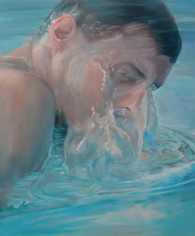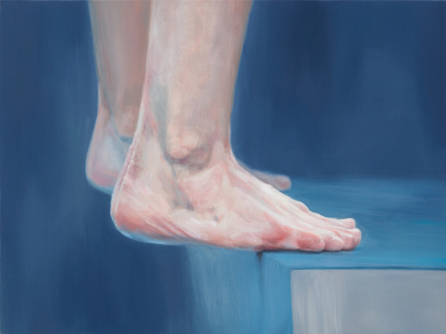 다이빙대 끝에 까치발을 하고선 아슬아슬하게 균형을 잡는다. 신중하게 숨을 고르고 발판을 힘차게 구른 뒤 공중으로 몸을 던진다. 다이빙을 통해 물속으로 가라앉다 다시 솟아오르는 순간, 즉 하강과 상승의 순간을 포착한 ‘다이빙’ 시리즈이다. 부산 기장군 기장읍 기장해안로 오브제후드 갤러리에서 지난 4일부터 진행되는 ‘표면과 심연: Deeper than Deeper’ 전시는 이한나(1997년생) 작가의 부산 첫 개인전이다. 이화여대 조형예술대학에서 서양화를 전공하고, 현재 동 대학 일반대학원 석사 과정(서양화 전공)에 있는 신예다.