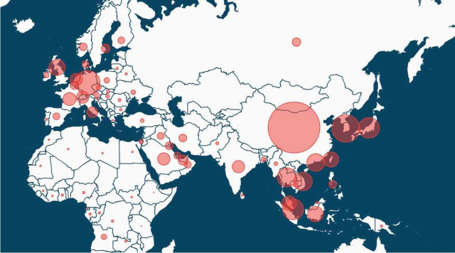 남중국해를 이용하는 국가별 물동량을 원으로 나타낸 그림(위)과 우리 국적 원양 선사인 HMM. KMI 제공·부산일보DB