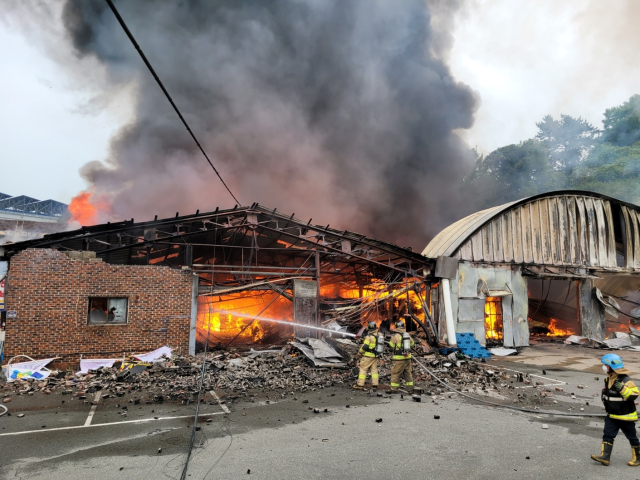 인근 공장 관계자의 신고를 받고 출동한 소방당국은 이날 오후 6시 30분께 큰 불길을 잡았다.