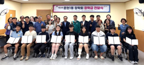 부산 남구 (사)문현1동 장학회(회장 박도상)는 지난 6월 10일 문현1동 행정복지센터에서 관내 고등학생 10명에게 1인당 50만원씩 총 500만원의 장학금을 전달했다.