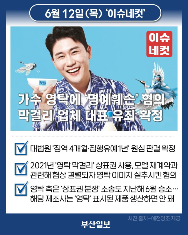 1. 가수 영탁에 ‘명예훼손’ 혐의…막걸리 업체 대표 유죄 확정