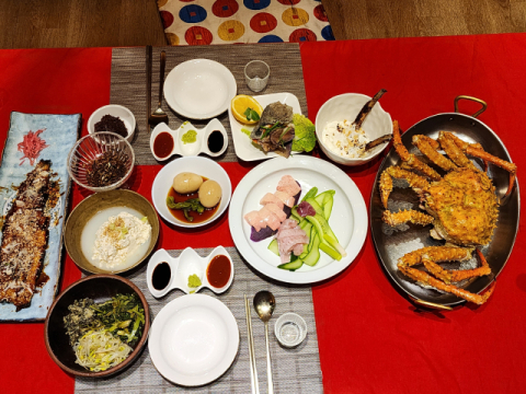 지난달 24일 부산 해운대구 송정의 홀리라운지에서 ‘이모카세 1호 김미령 요리사와 함께하는 부산 제철 바다 한상'이 열리고 있다. 한국관광공사 제공