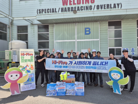 한국환경공단 부산울산경남환경본부(본부장 서승명)는 18일과 20일 여름철 폭염선제적 대비와 유해화학물질 취급 사업장 근로자의 온열질환 예방을 위해 ‘Hi-Five 안전프로젝트’의 ‘식’(食) 단계 실천으로 식음료 및 안전물품 등을 지원한다고 밝혔다.