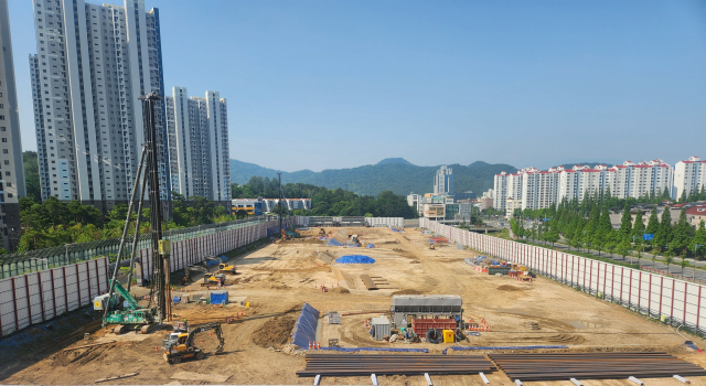 경남 창원시 의창구에 들어설 스타필드 창원 시공을 맡은 신세계 건설 관계자들이 18일 오전 중장비를 동원해 흙막이 작업을 진행하고 있다.