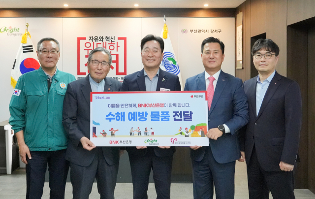 BNK부산은행(은행장 방성빈)은 지난 19일 강서구청에 모래주머니, 안전 우의, 양수기, 응급폭염키트 등 긴급 구호물품과 함께 선풍기 150대를 기증하는 ‘수해예방 물품 및 선풍기 지원 전달식’을 가졌다.