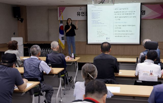 지난해 8월 부산 동구보훈회관에서 부산 동구청의 '해피엔딩 장례 지원사업' 참여자들이 유언 교육을 받고 있다. 부산일보DB