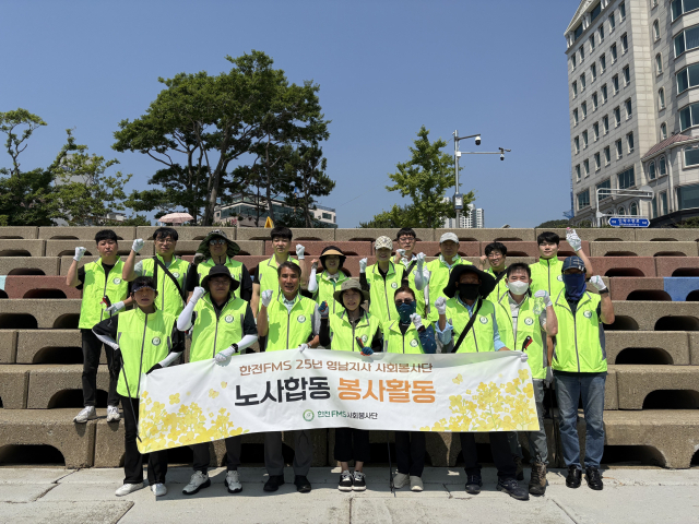한전에프엠에스(주) 영남지사(지사장 공한주)는 지난달 26일 부산 광안리수변공원에서 노사 합동 청소 봉사활동을 진행했다.