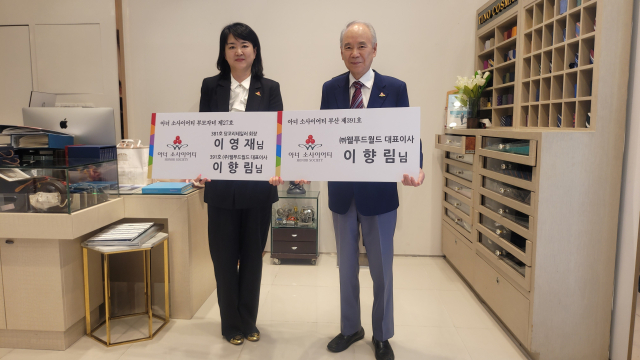 부산사회복지공동모금회(회장 이수태·부산사랑의열매)는 30일 오후 부산 부산진구 당코리테일러에서 (주)웰푸드월드 이향림 대표이사의 아너 소사이어티 회원 가입식을 하고, 부산 391번째 아너 회원의 탄생을 알렸다.
