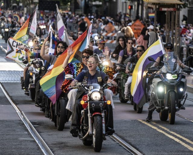 29일(현지 시간) 미국 샌프란시스코 마켓 스트리트에서 제 55회 ‘샌프란시스코 프라이드 퍼레이드’(성소수자 축제)가 열려 참가자들이 행진하고 있다. 도널드 트럼프 미국 대통령의 다양성·형평성·포용성(DEI) 근절 정책에 기업들이 후원을 줄였지만, 성소수자를 지지하는 대규모 인원이 거리로 쏟아져 나왔다. UPI연합뉴스