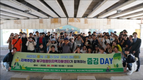 ‘줍깅’은 쓰레기 줍기와 달리기의 합성어로 건강과 환경을 함께 생각하자는 의미를 담은 운동이다. 이날 행사에는 북구 희망터지역자활센터 참여 주민, 금명중학교 학생 및 학부모, 동원종합사회복지관, 북부교육지원청 학교운영위원회협의회, 북구청 등 약 100여 명이 참여해 화명 대천천 일대에서 쓰레기를 줍고, 환경운동 캠페인을 함께 진행했다.