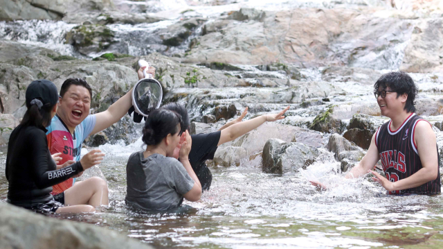 전국적으로 무더위와 폭염이 이어지는 가운데 1일 오후 경남 양산시 평산동 한 계곡에서 피서객들이 물놀이를 즐기며 무더위를 시원하게 날려 보내고 있다. 연합뉴스