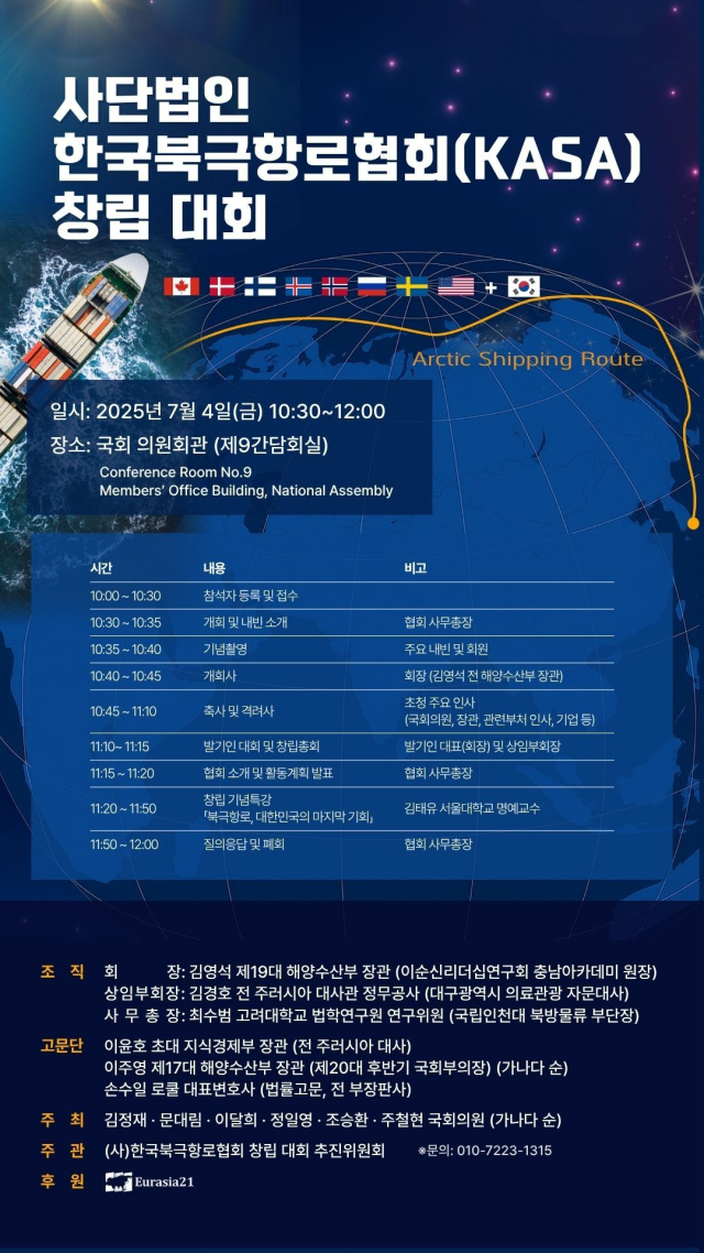 (사)한국북극항로협회는 4일 오전 10시 국회 의원회관 제9간담회실에서 공식 출범식과 창립총회를 연다고 3일 밝혔다.