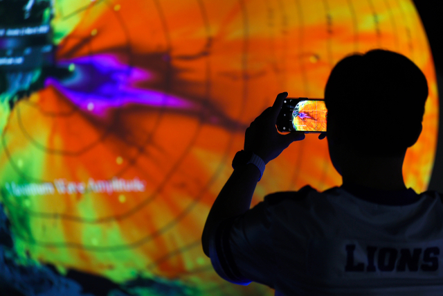 4일 대구 달성군 국립대구과학관에서 한 관람객이 2011년 동일본대지진 여파를 나타내는 SOS시스템을 살펴보고 있다. 일본에서 올해 7월 대지진이 발생할 것이라는 소문이 확산하는 가운데 규슈 가고시마현 도카라 열도에서 지난달 하순 이후 발생한 소규모 지진이 3일 1천 회를 넘었다. 연합뉴스